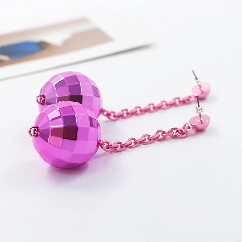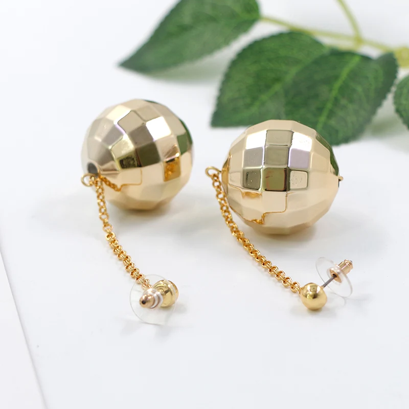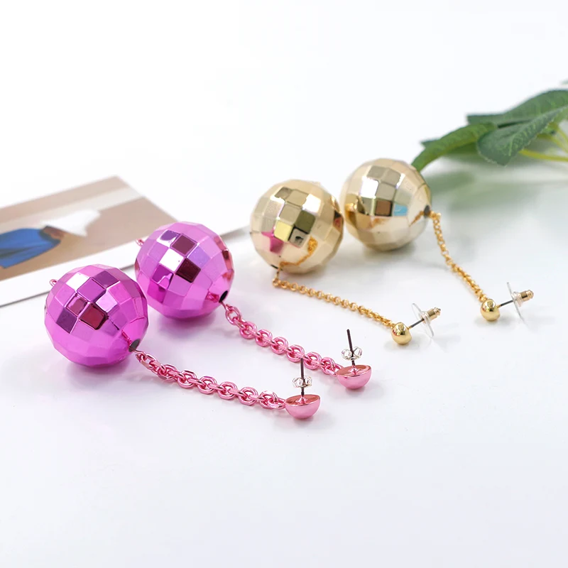 Disco -Ohrringe für Plastikkugel hängen von Ihren Ohren, um Ihre Augen zum Leuchten zu bringen. Und der Plastik ist ein leichtes Material, das den Komfort des Tragens von Disco -Plastikkugelohrringen befriedigen und ein metallisches Gefühl erzielen kann.