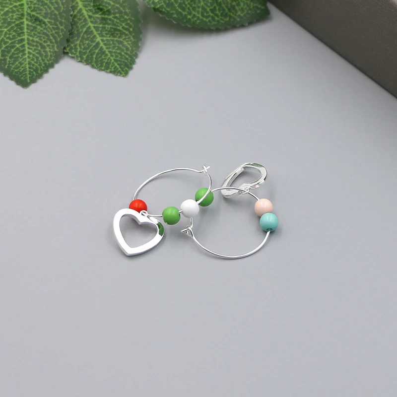 Die Farbe von Kunststoffperlen kann basierend auf der Kleidung und dem Gesamtaussehen ausgewählt werden. Zum Beispiel können beim Kombination mit hellfarbenen Kleidung lebende Plastikperlen ausgewählt werden, während für schlichte Kleidung zurückhaltende Plastikperlen empfohlen werden. Dieses herzförmige Messing mit Plastikperlen Ohrringen kann perfekt mit Kleidung im Retro-Stil im Hongkong-Stil übereinstimmen.